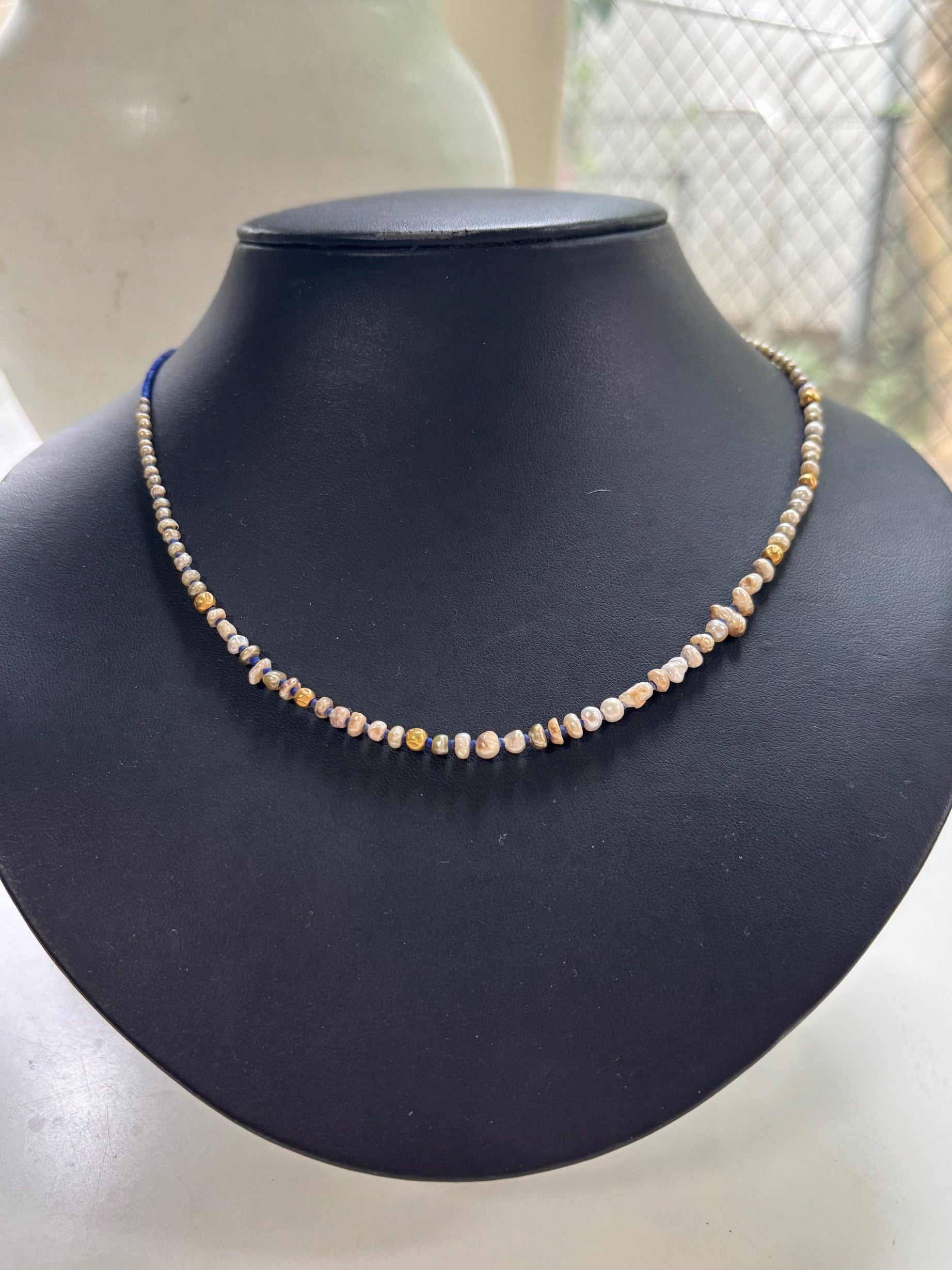 古代発掘パール・ラピスラズリ・K18金細工 ネックレス