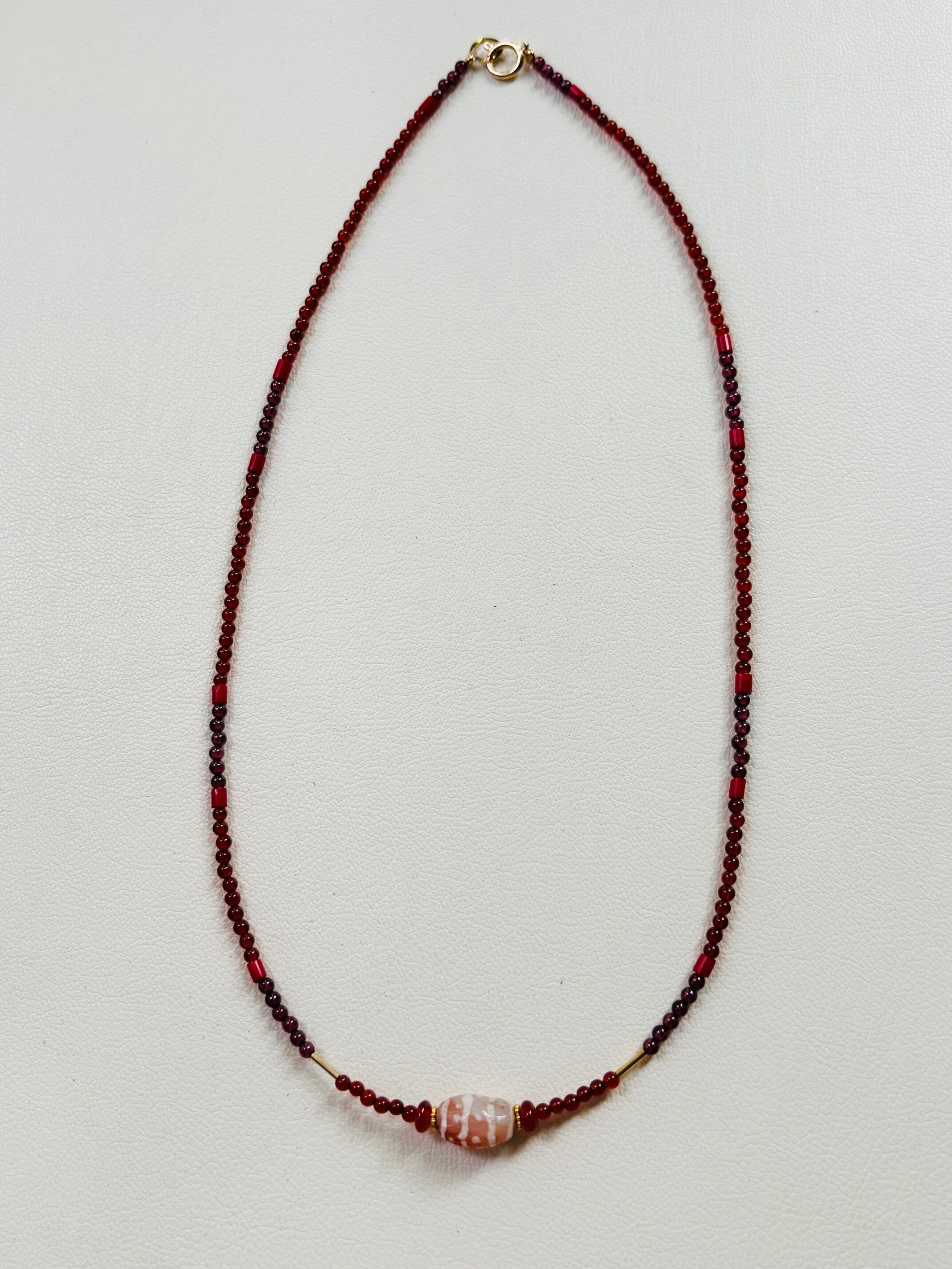 エッチングカーネリアン(横約1cm)、全体の長さは約41.5cm(金具込み)