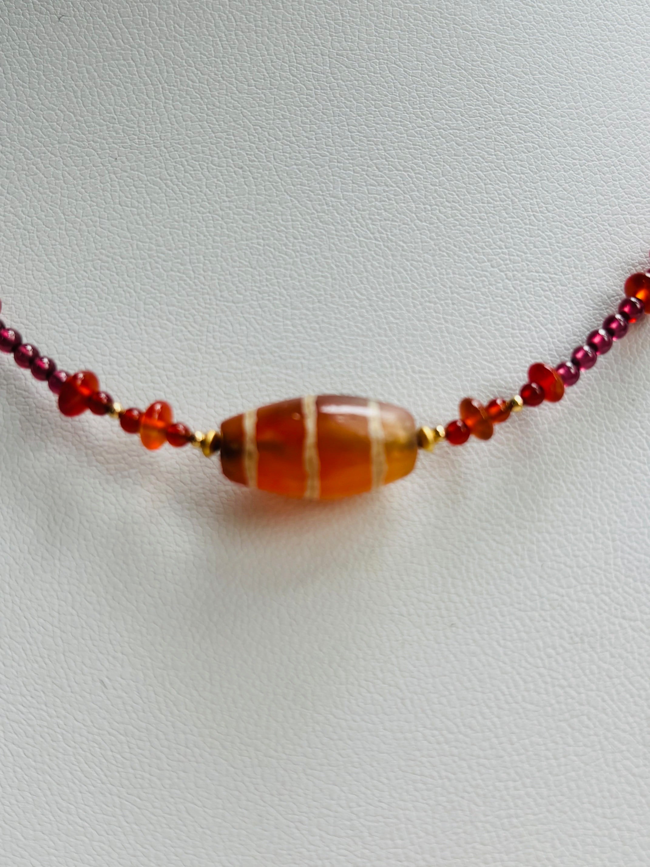 古代エッチングカーネリアン(ストライプ)・カーネリアン・K18金細工